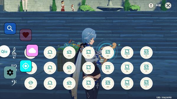 2、点击之后就可以打开原神,游戏内就会出现浮窗,如图,在游戏内装配弹琴道具;