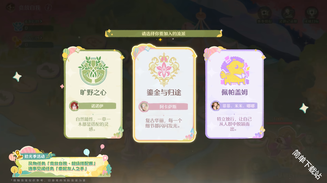 - 可在三个不同的流派阵营中选择一个来进行加入
