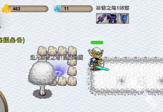 7、冰雪1:在左下角,从石头的左下方冲刺进去
