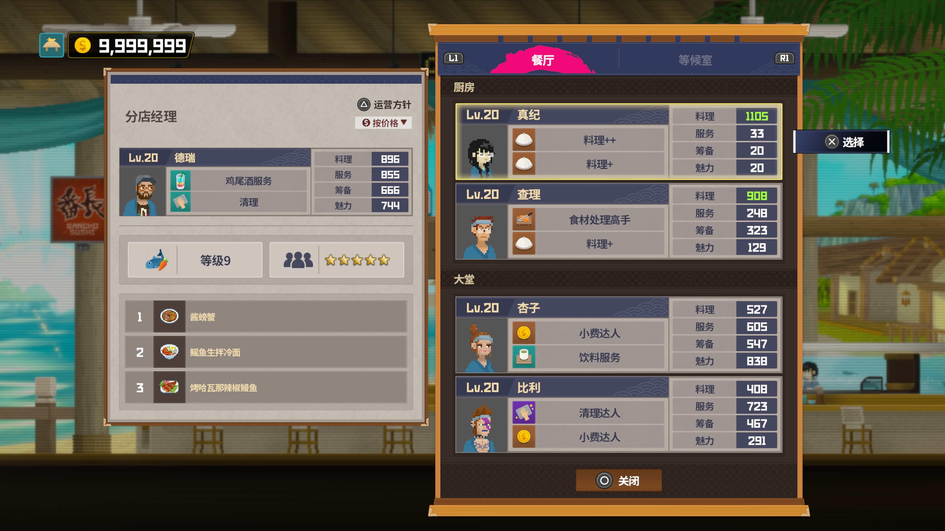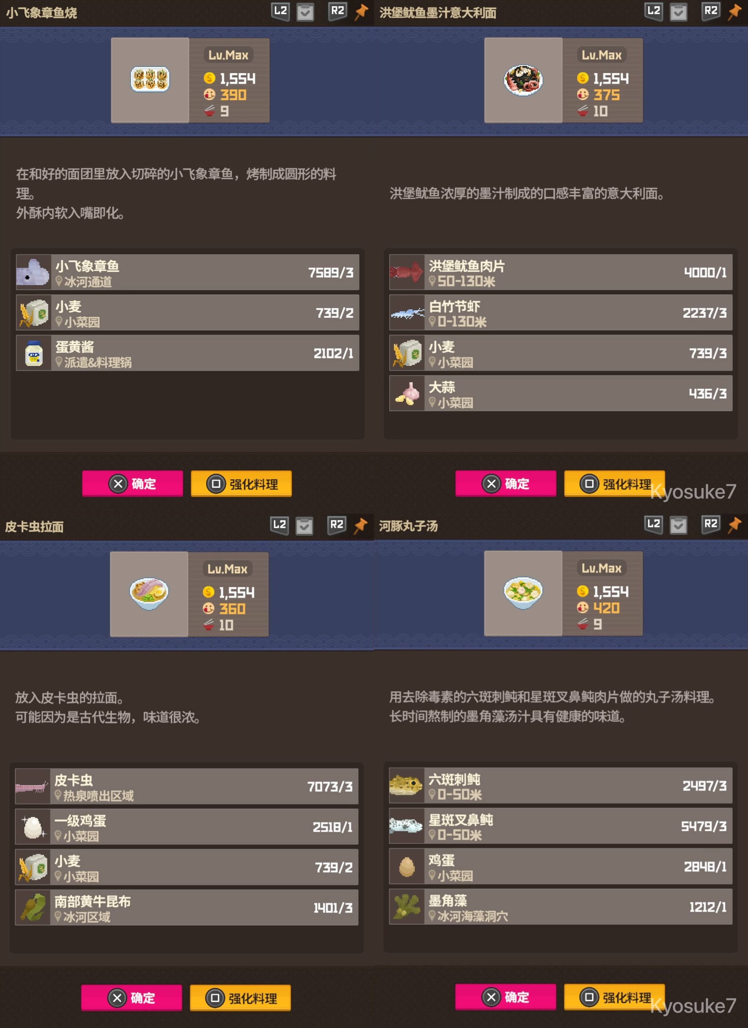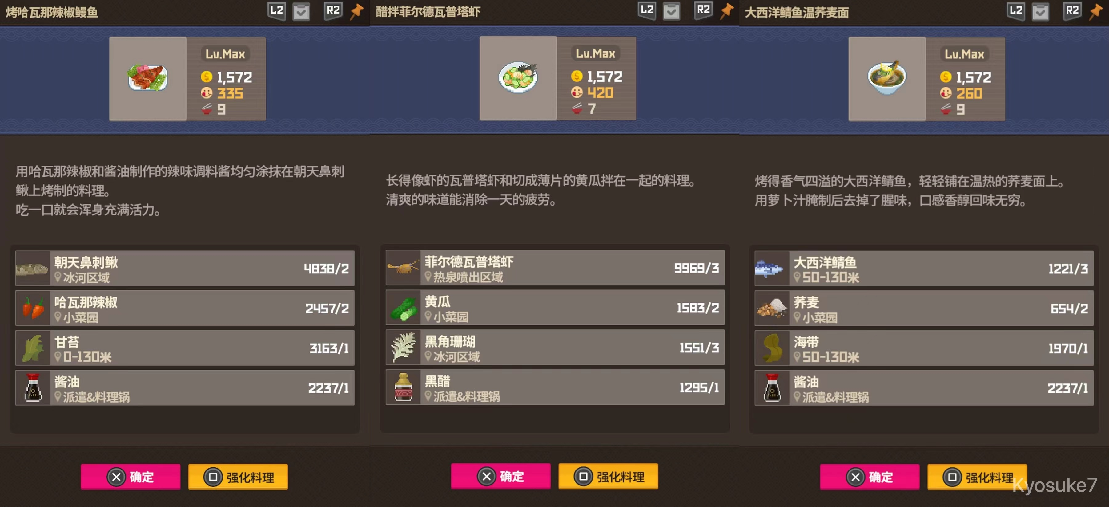 鳐鱼生冷拌面虽然单价依旧没有比过酱螃蟹和龙虾拼盘,但优点是更容易成型且制作份数更多,一旦养殖获得也更稳定,个人评价属于同一档T0毕业菜,因9份菜特性更推荐在毕业分店使用。