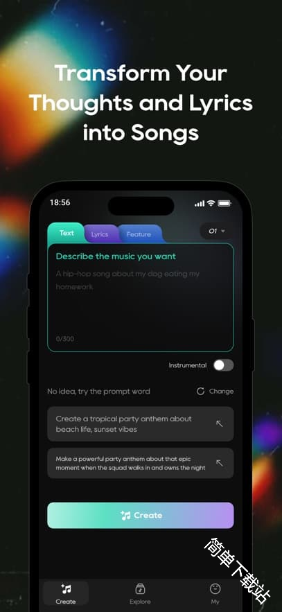 1、能适配安卓、苹果、网页三端,降低了音乐创作的门槛,让零基础小白也能自制喜好的音乐