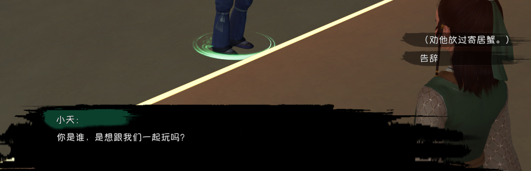 6、首先对话NPC:小天,劝他放过寄居蟹