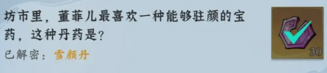 3、坊市里,董菲儿最喜欢一种能够驻颜的宝药,这种丹药是?雪颜丹