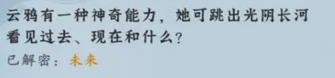 2、云鸦有一种神奇能力,她可跳出光阴长河看见过去、现在和什么?未来