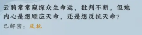4、云鸦常常窥探众生命运,批判不断。但她内心是想顺应天命,还是想反抗天命?反抗