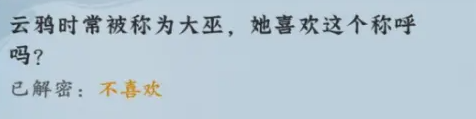 3、云鸦时常被称为大巫,她喜欢这个称呼吗?不喜欢