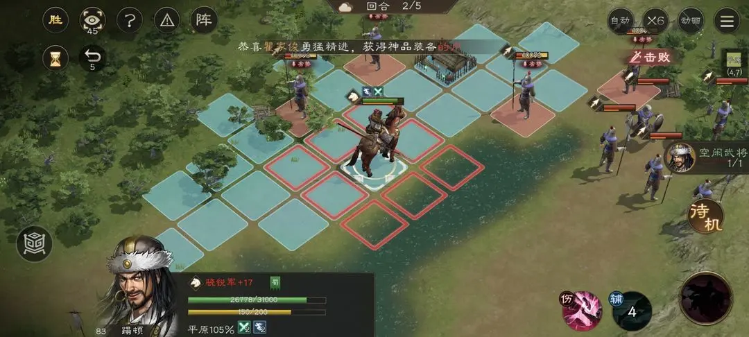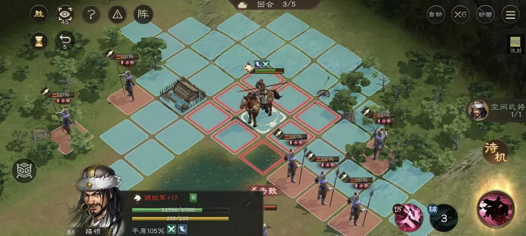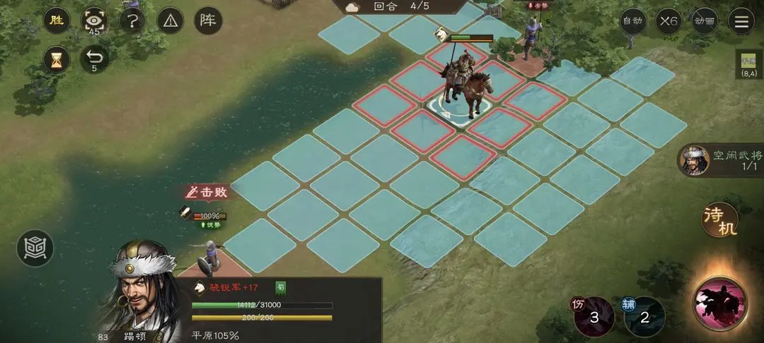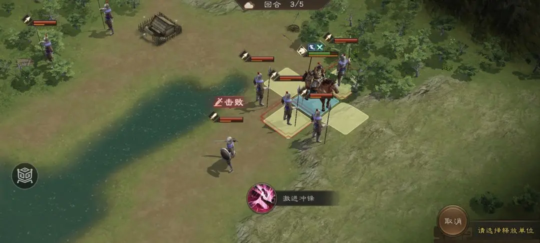 新三国志曹操传游历事件中的乌桓驰援开局首先要走到小兵面前放个二技能,在第二回合时就走到最大位置砍小兵,再往前走后到中间小兵位置放一技能,最后冲过去放个大即可过关。