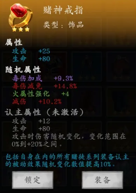 奖励:赌神戒指(紫装赌徒套专属饰品,唯一道具)、银两*640、骰子张好感度+25